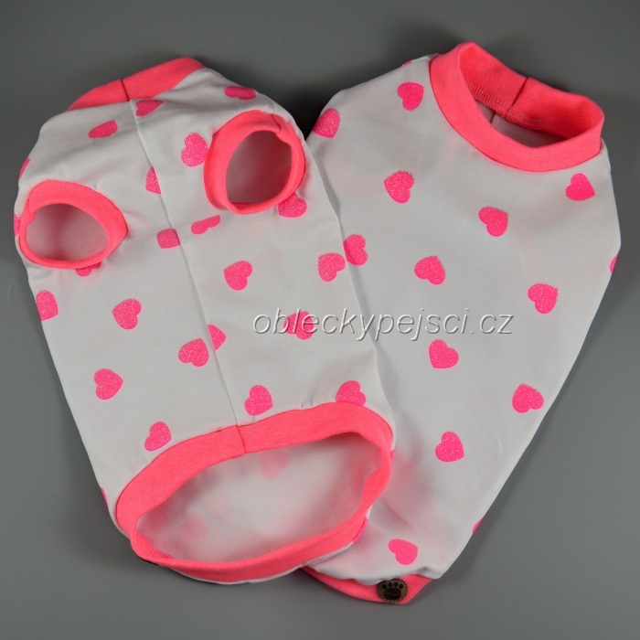 Bílé velmi příjemné tričko s růžovými třpytivými srdíčky pro malé psy holky