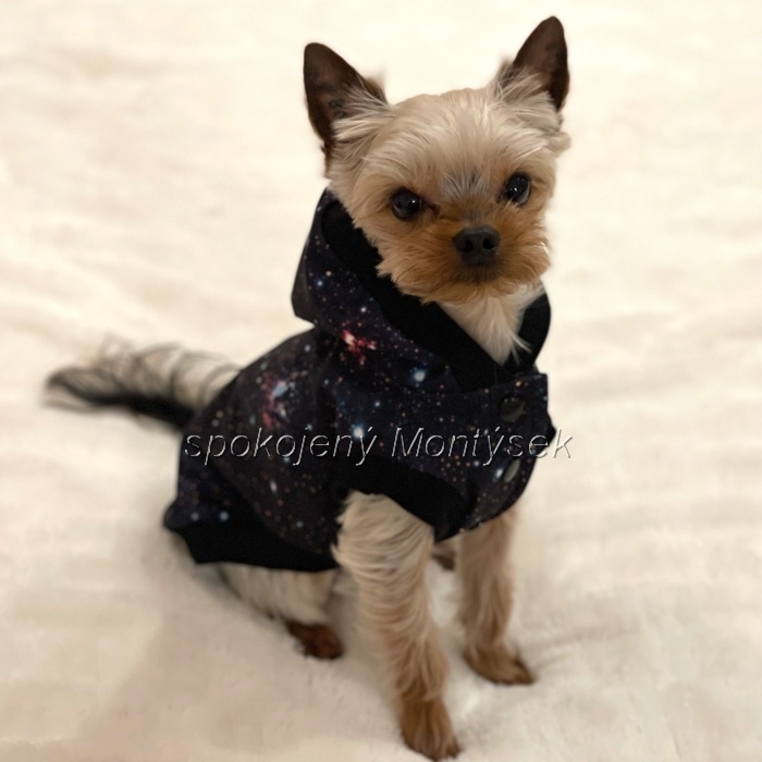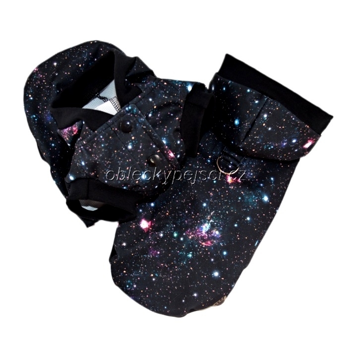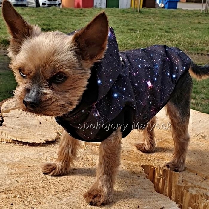 Letní bundička - Galaxie je z příjemného a krásného materiálu, dobře našemu pejskovi sedí, je pěkně propracovná. Ráda kupuji oblečky jenom od Vás, jsou pěkně ušité, vždy přesně sedí a máte krásné látky na psí oblečky.