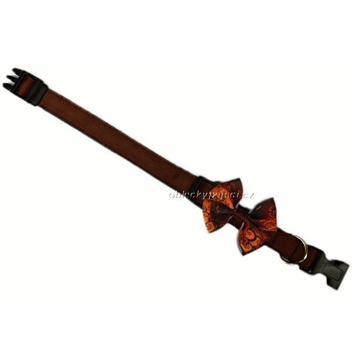 Čokoládově hnědý obojek s mašličkou s ornamenty pro psí holky i kluky