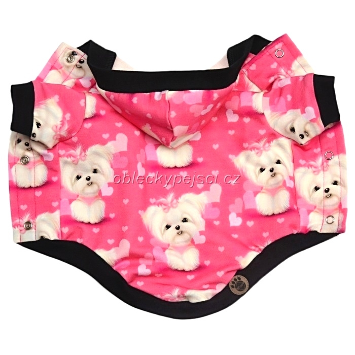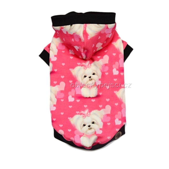 Tepláková, růžová mikina s překrásným digitálním potiskem maltézáčků pro malé psí holky