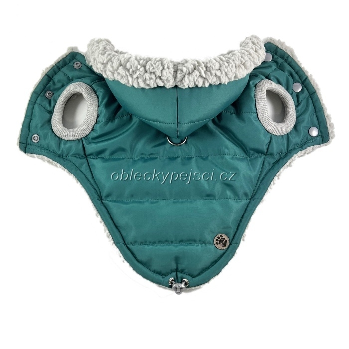 - pod kapucí je všitý polokroužek pro připnutí vodítka, také připevněn malý druk, který drží kapuci na svém místě