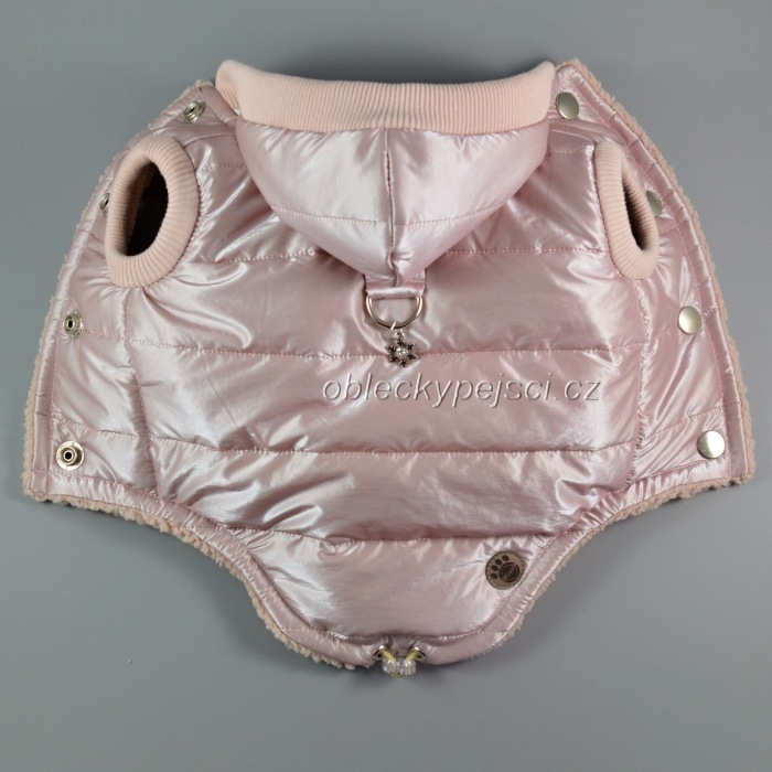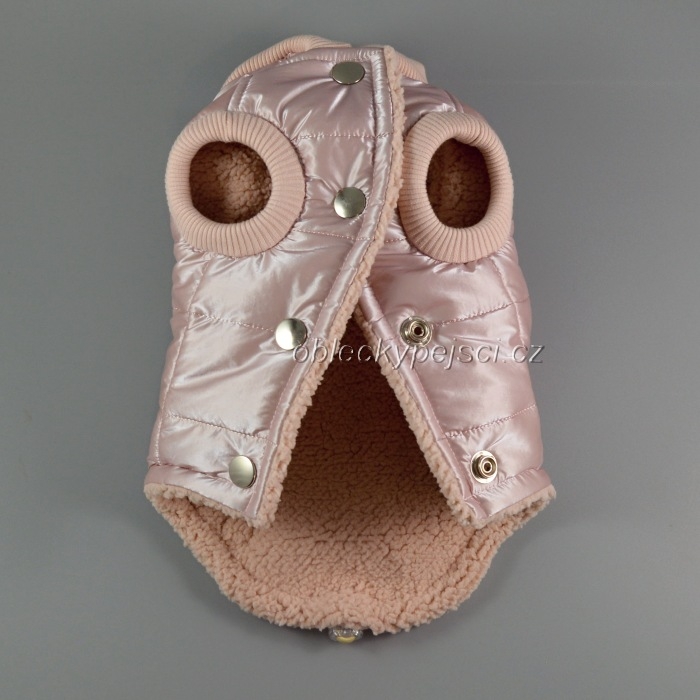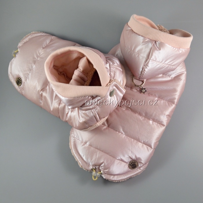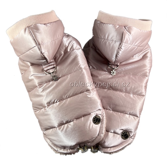 Luxusní, velmi teplá pudrově růžová bunda s matným leskem pro náročné psí holky do zimních dnů + přívěsek s kamínkem Zdarma!