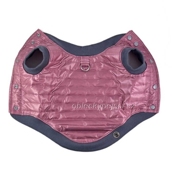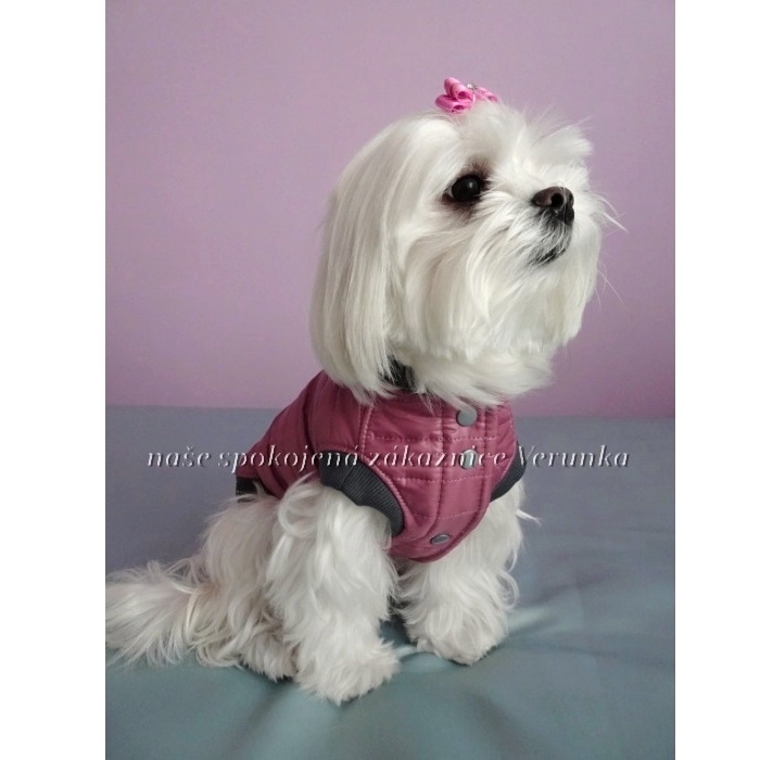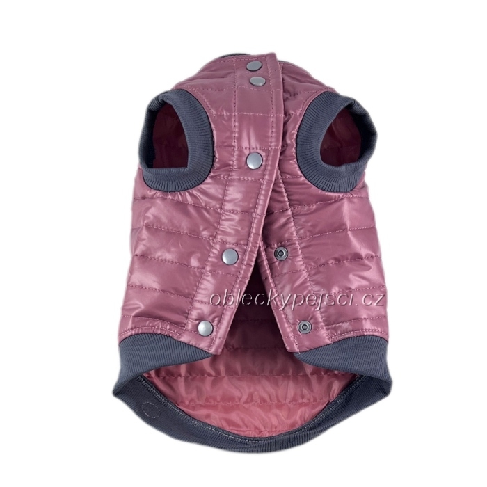 Růžovo - šedá bunda pro malé psí holky, co nemají rády kapuce, do jarních, podzimních/zimních dní