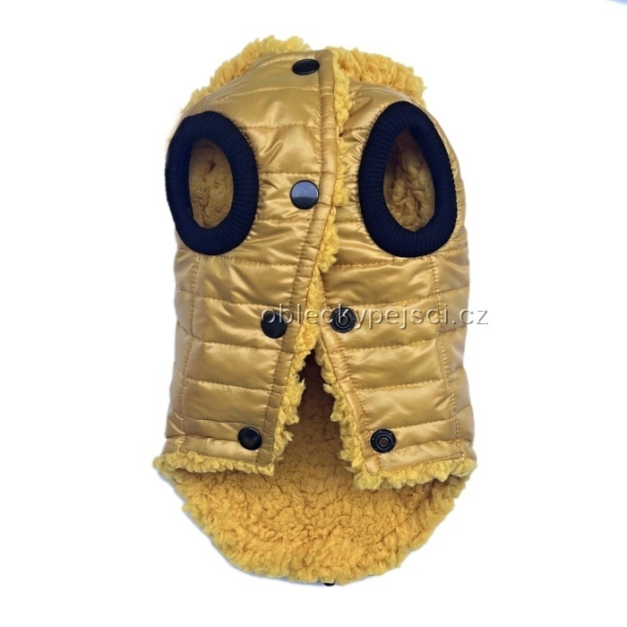 Zimní bunda žluto-okrová s límcem pro malé psí holky s heboučkou sherpou !Sleva na poslední velikost!