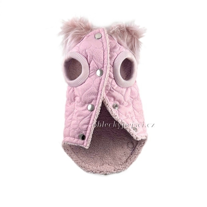 - kapuci zdobí přišitá krásná kvalitní kožešina v pudrově růžové barvě