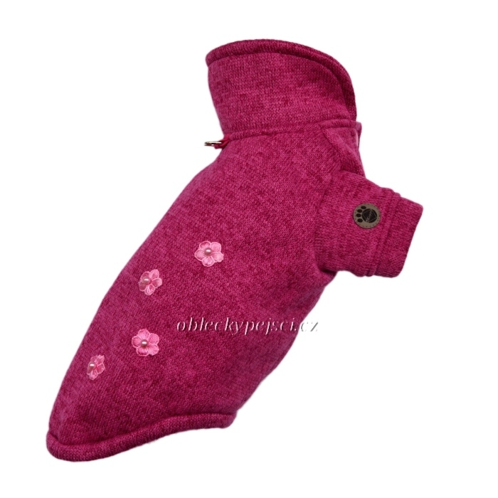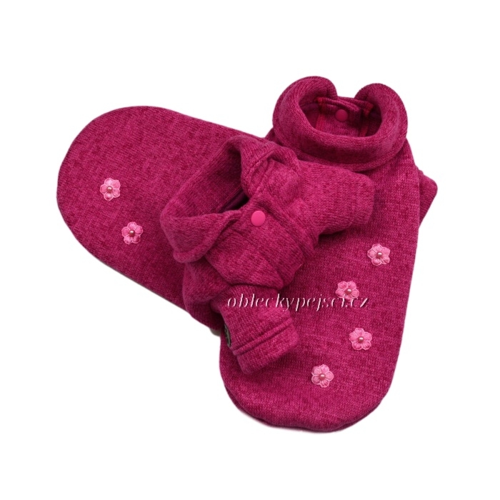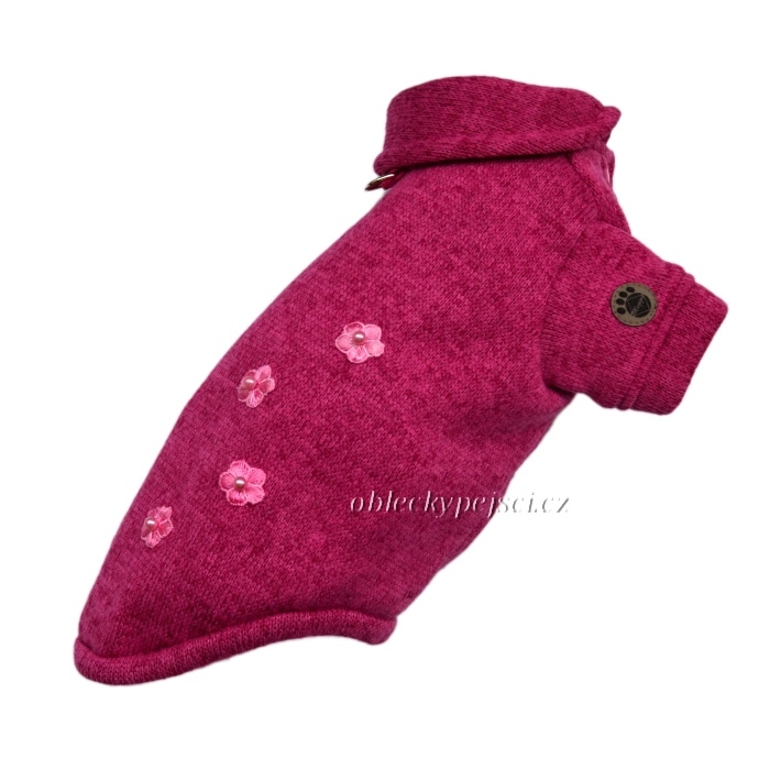 Růžový velmi příjemný svetřík pro malé psí holky zdobený drobnými kytičkami
