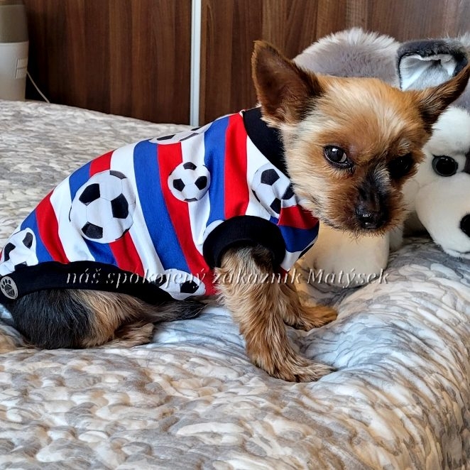 Výrazné bavlněné tričko pro malé psí kluky s digitálním potiskem fobalových míčů