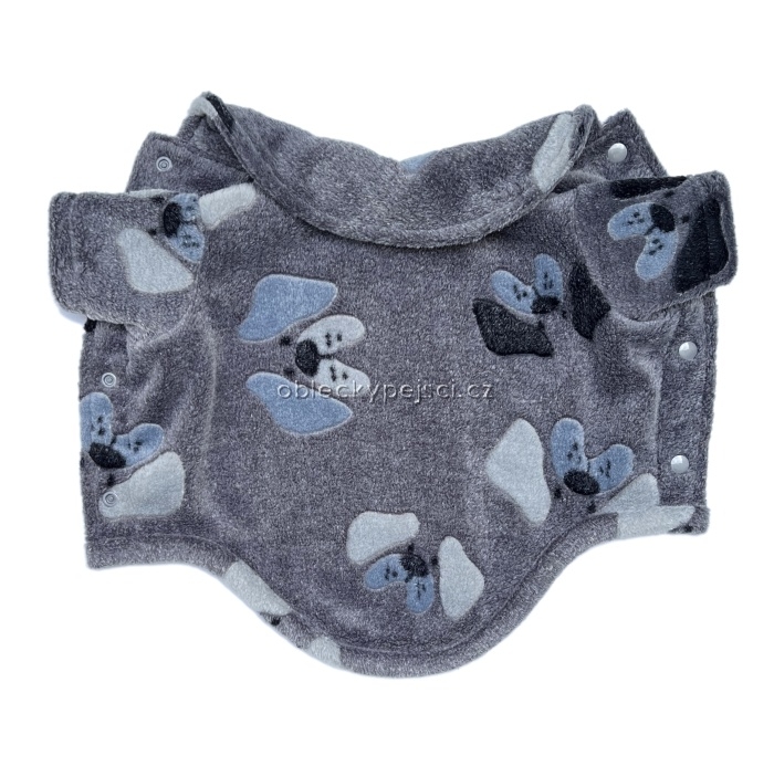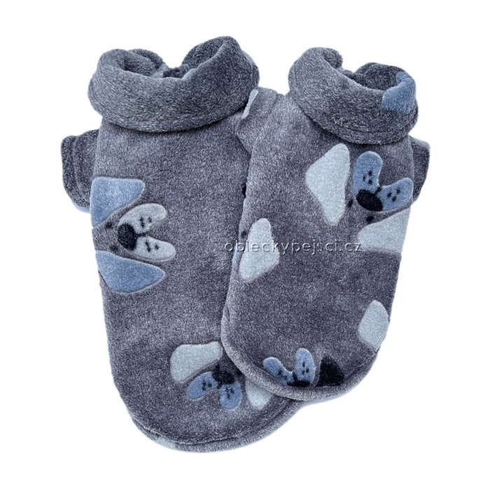 - ušitý je z velmi hebkého, příjemného, šedého wellness fleece s motivem roztomilých pejsků