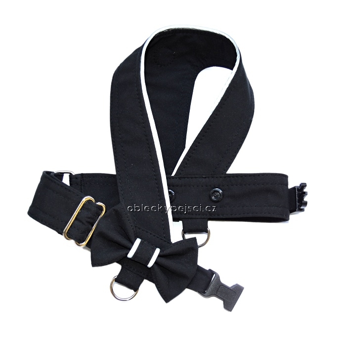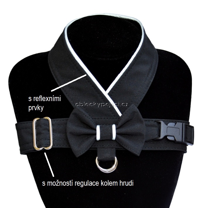 Černé, letní softshellové kšíry s mašličkou a reflexními prvky pro dobrou viditelnost vašich pejsků i v noci