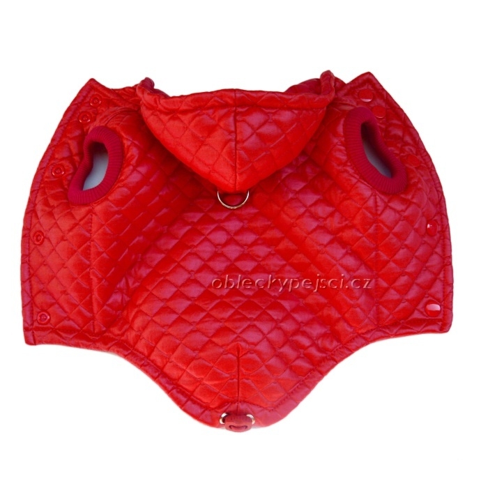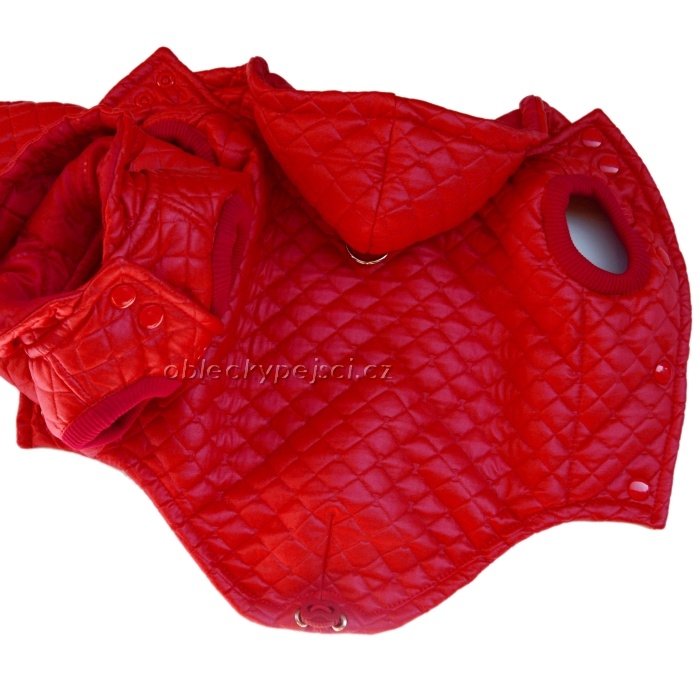 Červená prošívaná bunda ve vzhledu kůže z matného proševu pro malé psí holky do podzimních až zimních dní