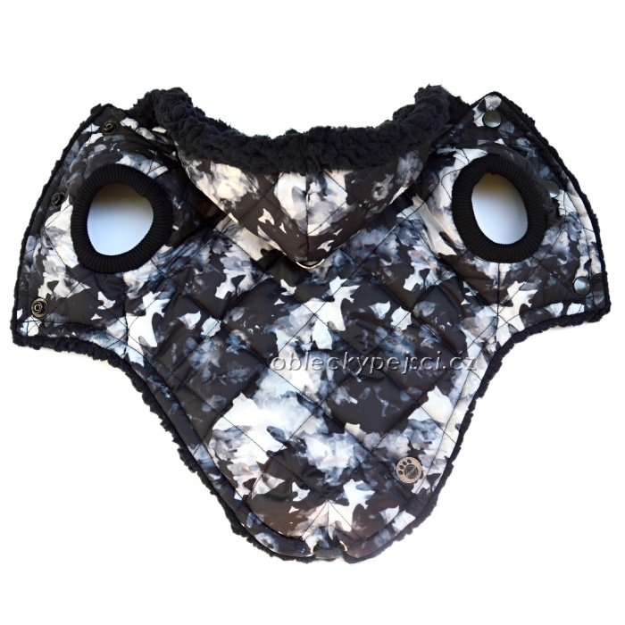 - pod kapucí je všitý polokroužek pro připnutí vodítka, také připevněn malý druk, který drží kapuci na svém místě