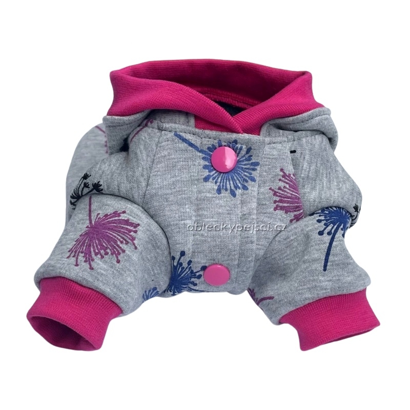 Tepláková mikina z hřejivého warmkeeperu s potiskem barevného chmýří pro malé psí holky do chladných dní