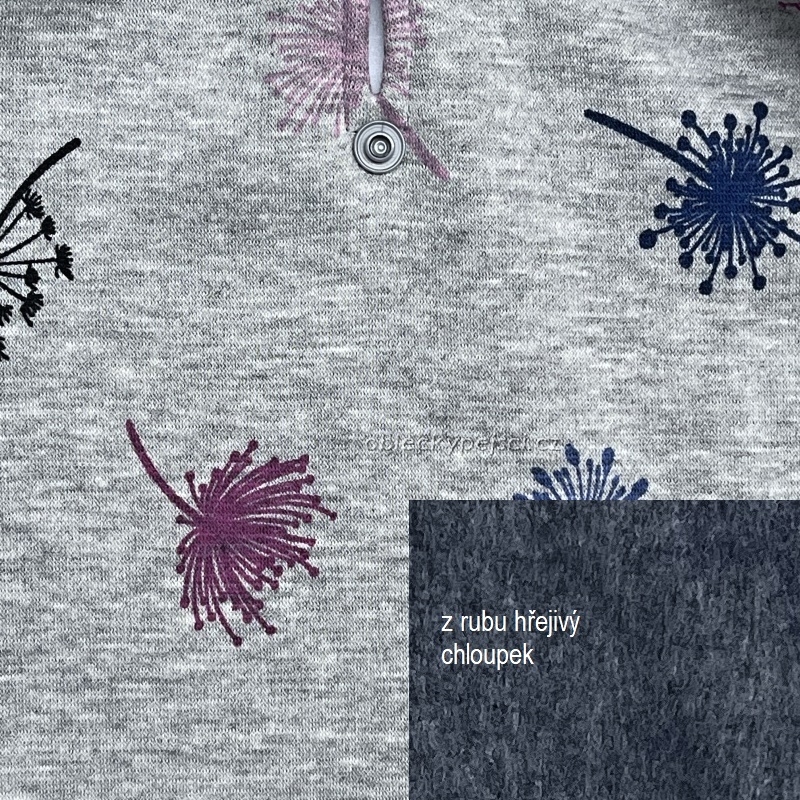 - ušitá je z velmi příjemné, měkké, pružné a hřejivé teplákoviny, která je z rubové strany počesaná s hustým vlasem, který zahřeje v kombinaci růžových nápletů