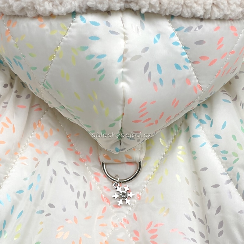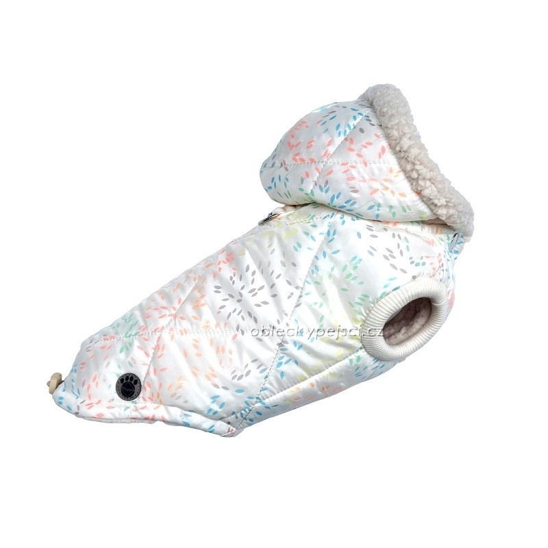Luxusní smetanová zimní bunda s nádherným potiskem drobounkých barevných lístečků pro příjemné zahřátí vašich psích holek do zimních dní + přívesek ZDARMA!