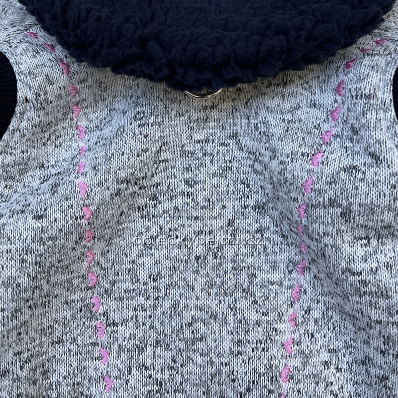 Světle šedý teplý zimní svetřík s výšivkou na zádech se srdíčky, podšitý heboučkou a teplou sherpou pro psí holky - ideální do zimních dní