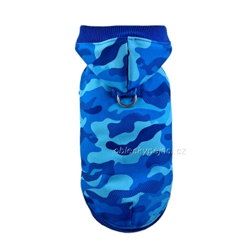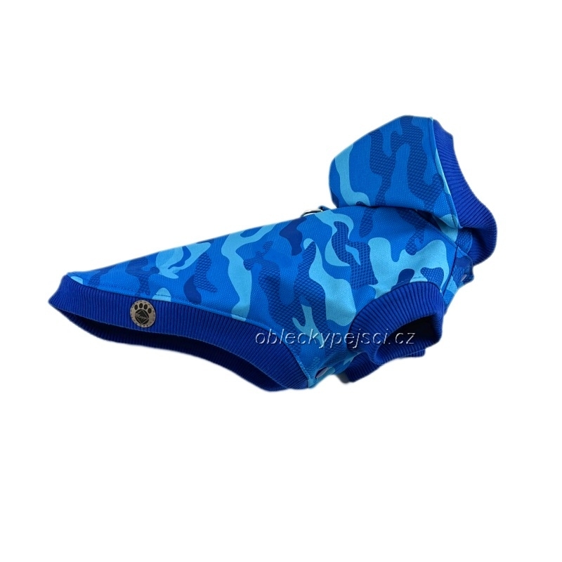 Softshellka s modrým maskáčovým vzorem pro malé psí kluky do jarních, podzimních až mírně zimních dní
