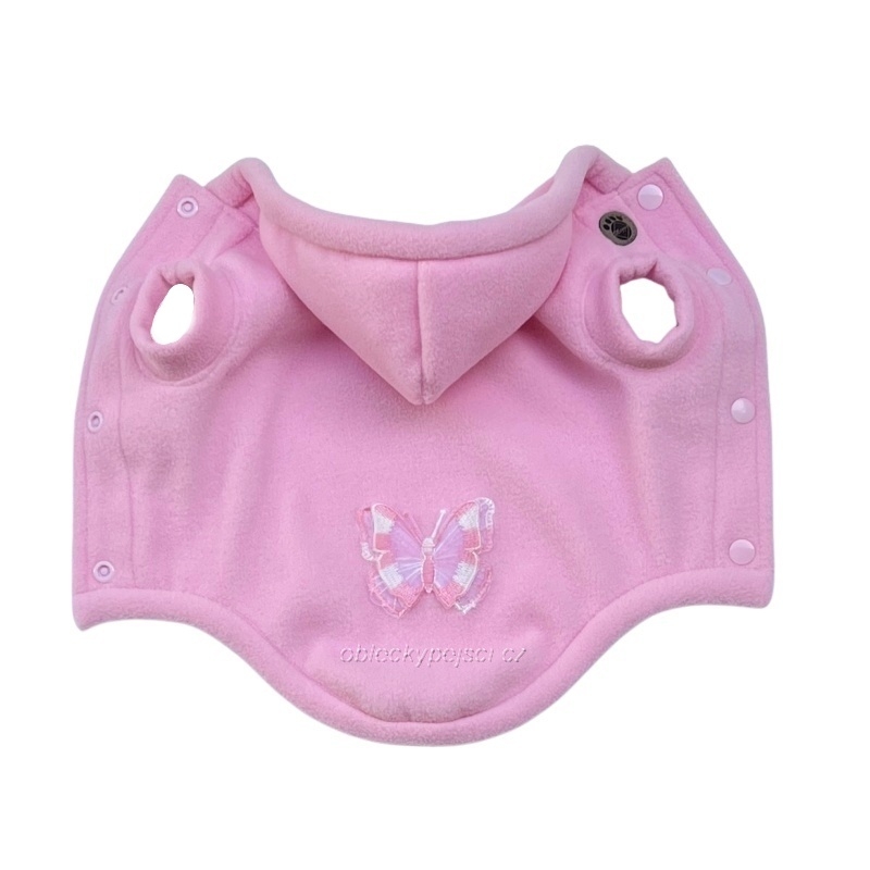 Velmi měkká a teplá fleecová mikina s krásnou nášivkou motýlka pro malé psí holky, co nemají rády rukávy