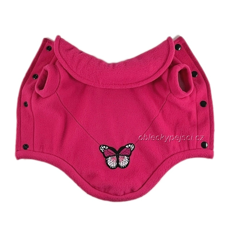 - ušitá je ze sytě růžového velmi příjemného, hřejivého fleece s hezkou aplikací motýla, který je přišitý na zádech