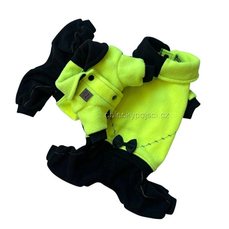 Fleecový overal pro malé psí holky v neonově žluté barvě do chladných a zimních dní