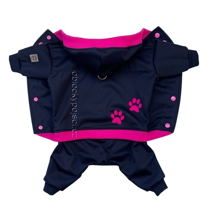 - ušitý je z příjemného, měkkého a pružného zimního softshellu v černé barvě(vnitřní strana černý fleece) v kombinaci ružových a černých nápletů