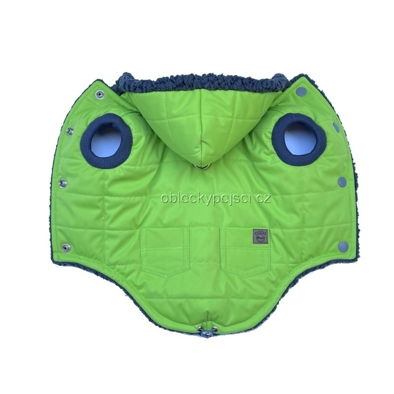 - pod kapucí je všitý polokroužek pro připnutí vodítka, také připevněn malý druk, který drží kapuci na svém místě