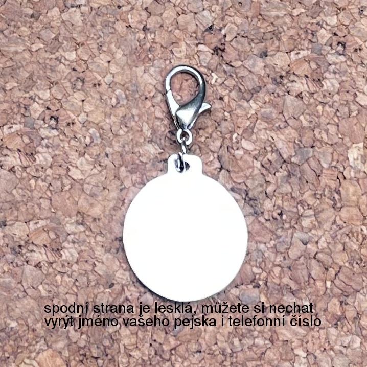 - můžete dozdobit obojek, ....také lze použít jako identifikační známku, kde si z rubu (rub je lesklý) můžete dát vyrýt jméno svého pejska i vaše telefonní číslo