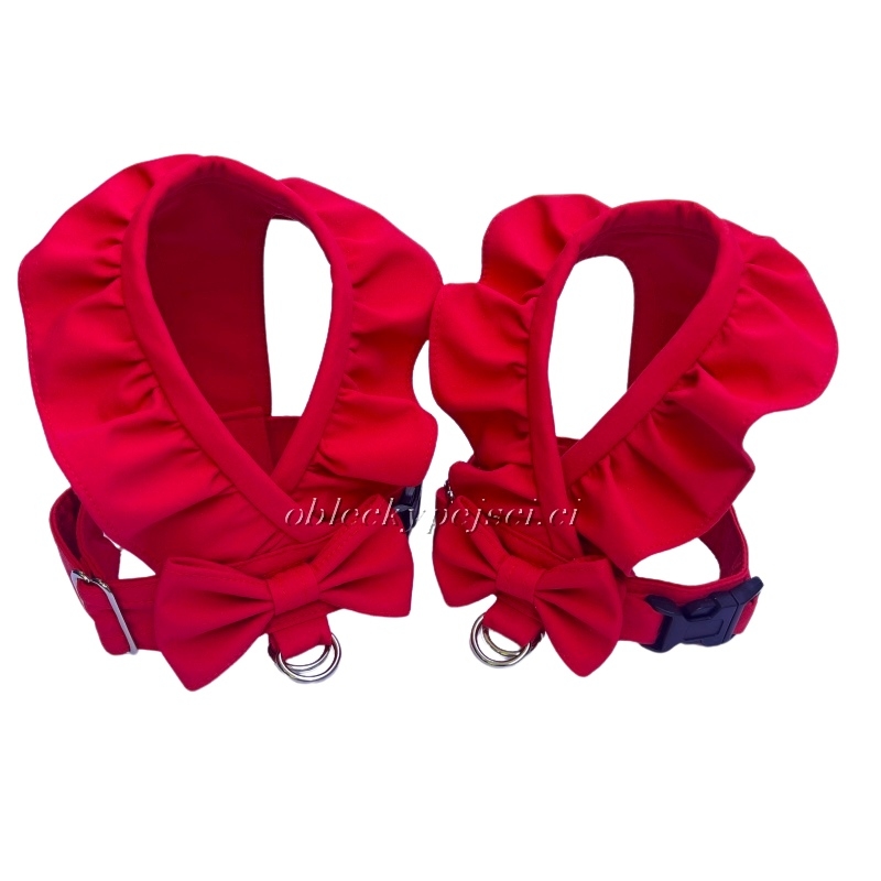 Krásné výrazně červené kšíry s volánky a mašličkou pro malé psí parádnice