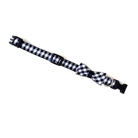 Hezký, pevný polypropylenový obojek s bavlněnou černo-bílou kostičkovanou nášivkou a mašličkou pro vašeho pejska.