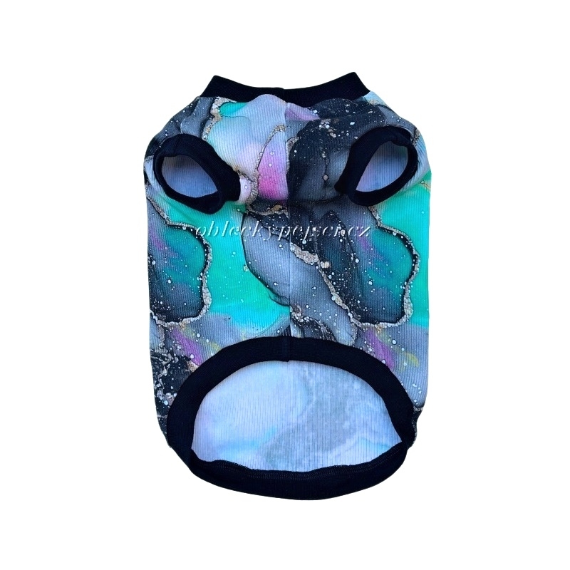 - ušité je z velmi příjemného, pružného, žebrovaného bavlněného úpletu s hezkým potiskem barevného mramoru v kombinaci černých nápletů