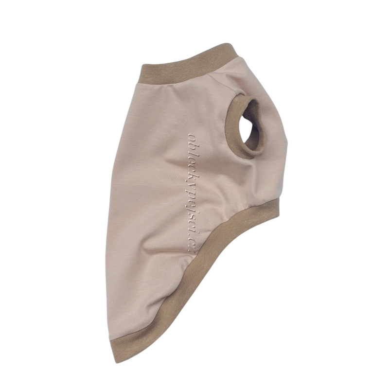 - ušité je z příjemného, bavlněného, pružného úpletu v barvě bílé kávy v kombinaci světle hnědých nápletů