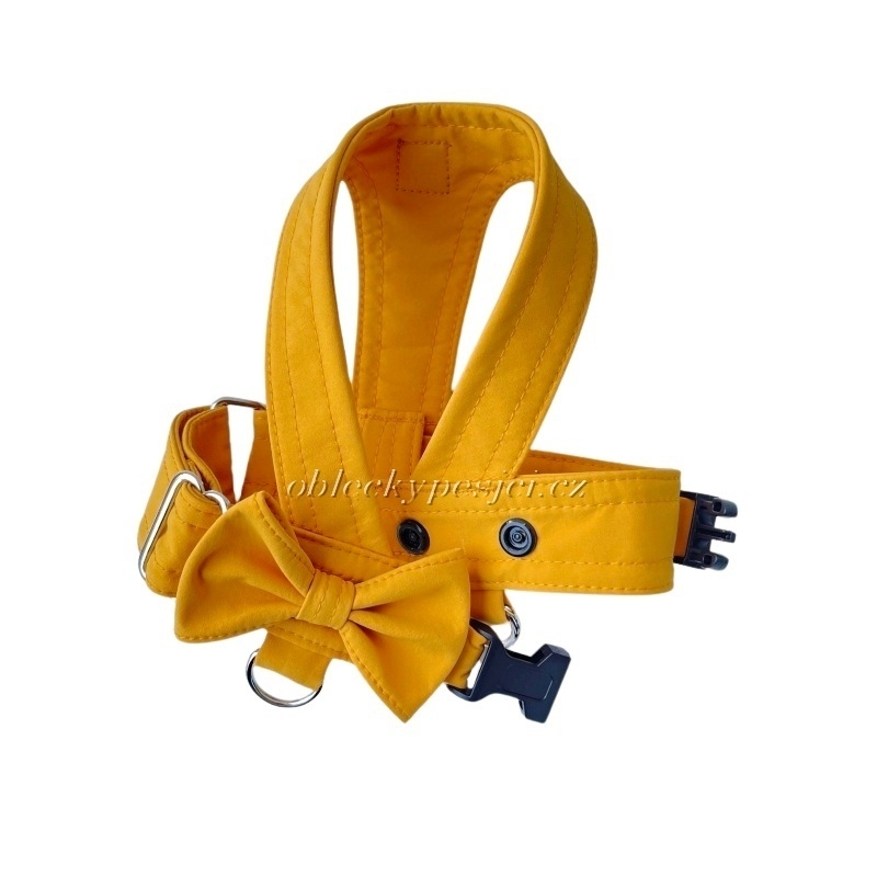 Okrově žluté kšíry s krásnou mašličkou pro pohodlí vašich pejsků