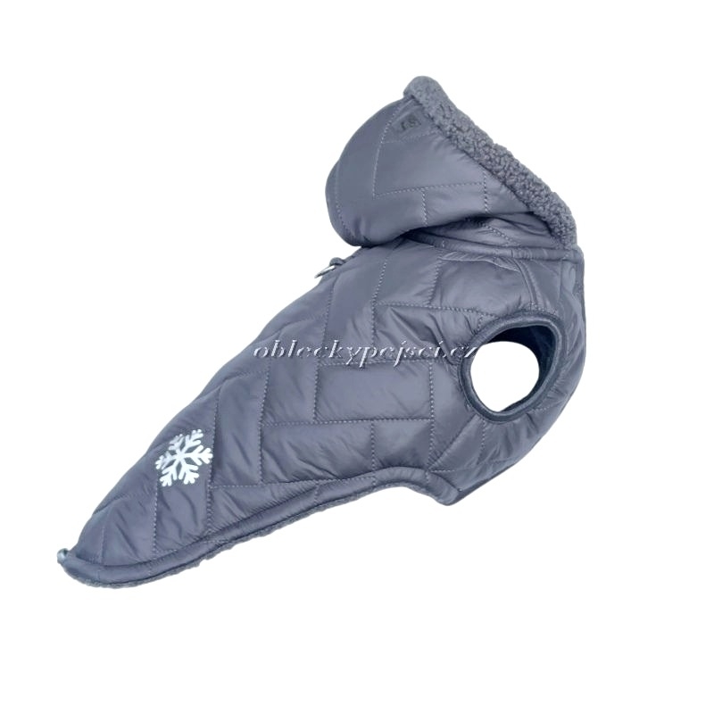 Zimní bunda šedá s reflexní vločkou podšitá s hřejivým beránkem pro malé psí kluky