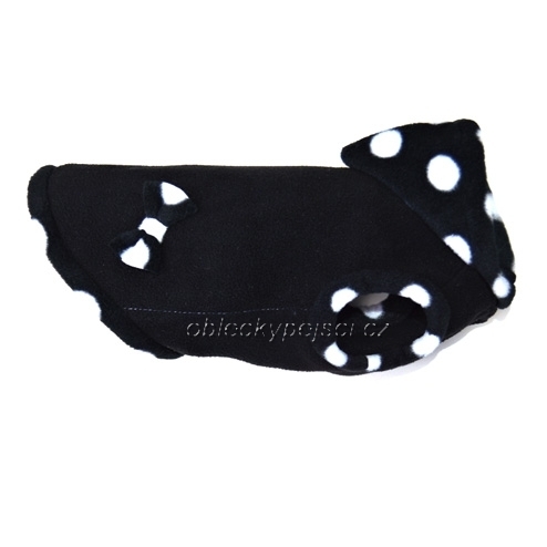 Ušitá je z kvalitního, černého měkkého fleece v kombinaci černého fleece s bílým puntíkem. Mikina se zapíná na bříšku pomocí suchých zipů.