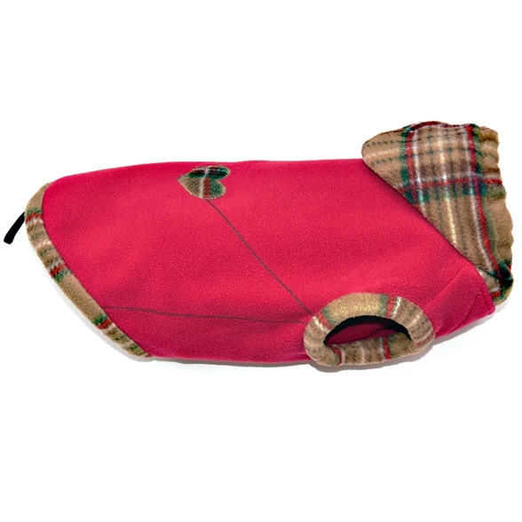 Ušitá je z kvalitního tmavě vínovo-růžového měkkého silnějšího polarfleece v kombinaci fleece hnědé kostičky ze kterého je i kapuce, olemování průramků i délky. Vesta se zapíná na hrudi pomocí suchých zipů. Fenečkám vesta chrání i celé bříško. Tato vesta vašeho pejska hezky zahřeje a díky materiálu mu v ní bude příjemně
