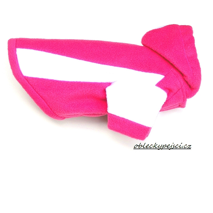 Hezká růžovo-bílá mikina s kapucí je vhodná pro všechny malé psí slečny. (do jarních, podzimních a zimních dnů.) Ušitá je z měkkého a teplého fleece.