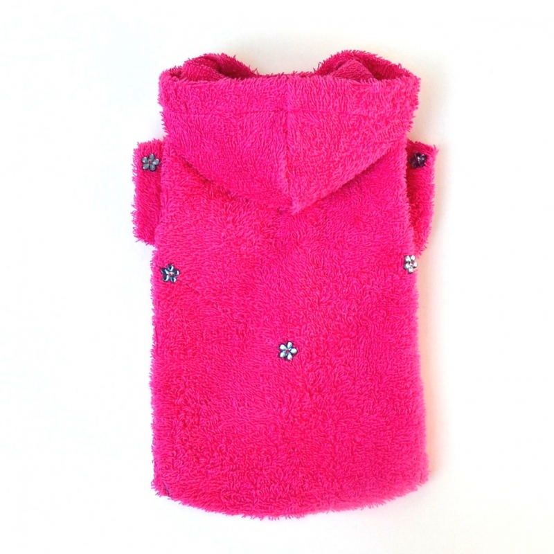 Sytě růžový župan s kapucí pro malé psí holky.