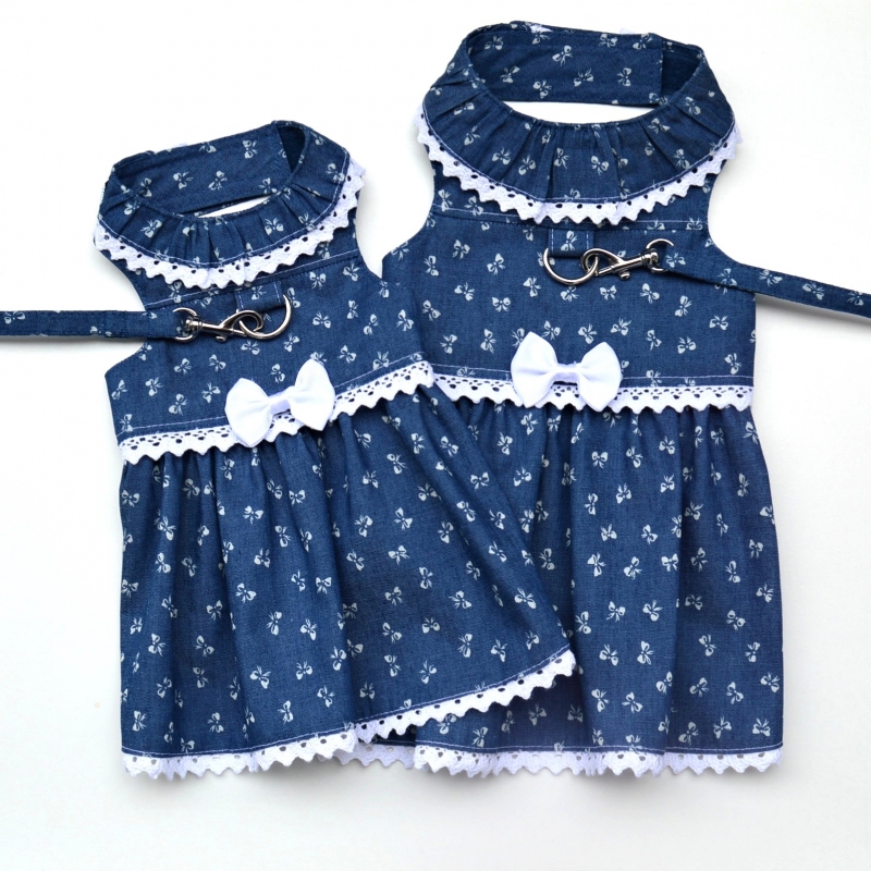 Džínové šaty + vodítko pro všechny malé psí holky.