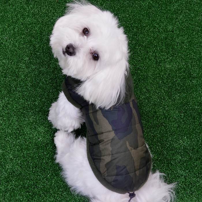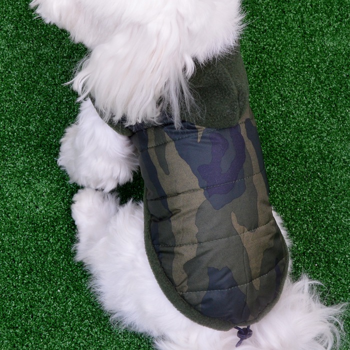 Úžasná stylová maskáčová bundička! Je sice pro pány pejsky, ale sluší i naší maltézačce mademoiselle Chanel, která se v ní už nakrucuje na procházkách a v lese, kam ráda s námi chodí, bude perfektní!