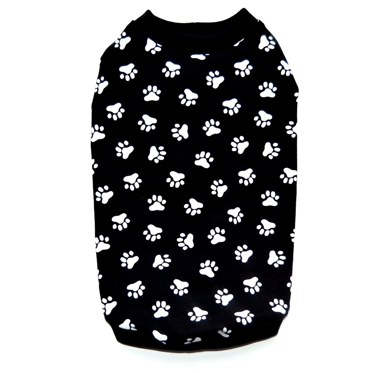 Černé triko s bílými tlapkami pro všechny psí parádnice.