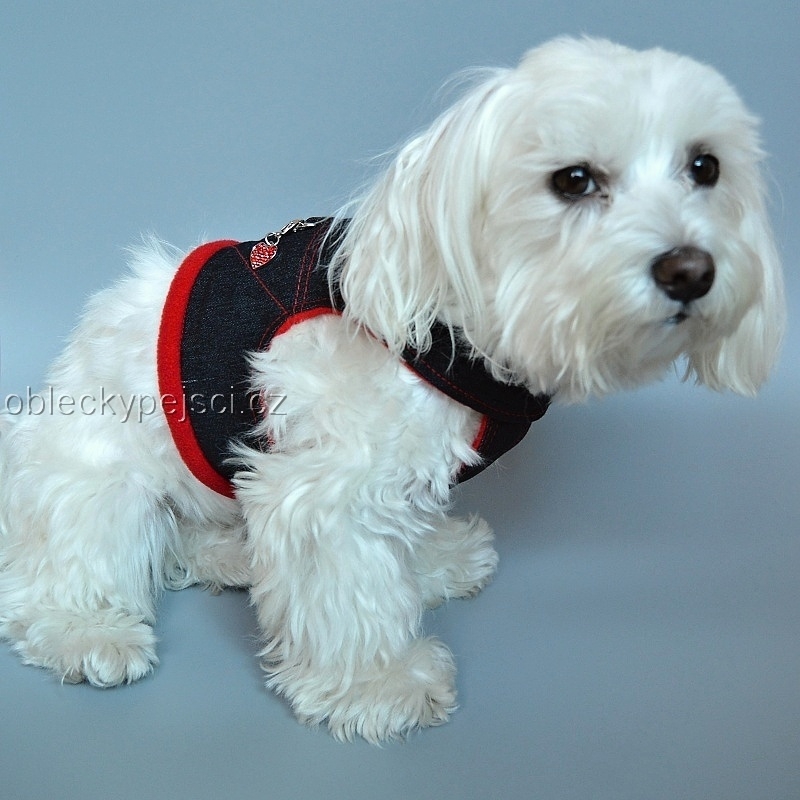 Kšíry jsou ušité z měkké, černé džínoviny, podšité kvalitním, červeným příjemně teplým fleecem. Na zádech mají všitý polokroužek pro připnutí vodítka a jsou červeně proštepované. Kšíry se zapínají pod krkem a hrudi pomocí suchých zipů, na hrudi je všitá náprsenka, která je rovněž podšitá teplým fleecem pro maximální pohodlí pejska. Kšíry jsou vhodné pro malé pejsky, ale i pro štěňátka. Kšíry se jednoduše oblékají.