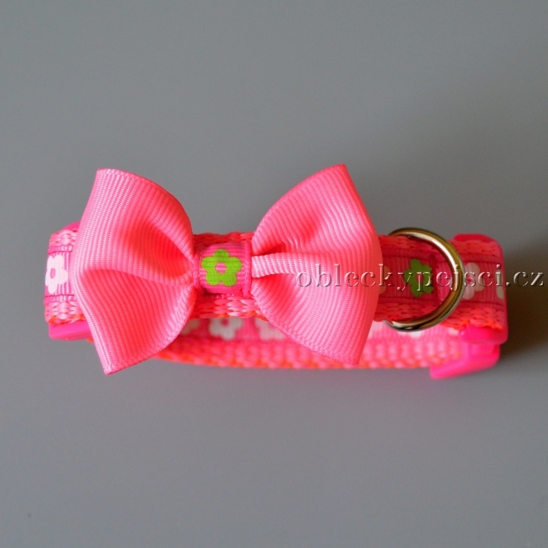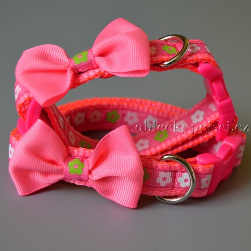 Obojek růžový s kytičkami a mašličkou pro všechny psí holky.