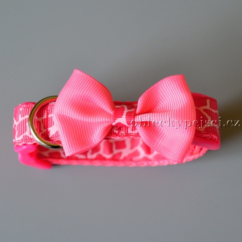 Obojek růžový s růžovým motivem a mašličkou pro všechny psí holky.