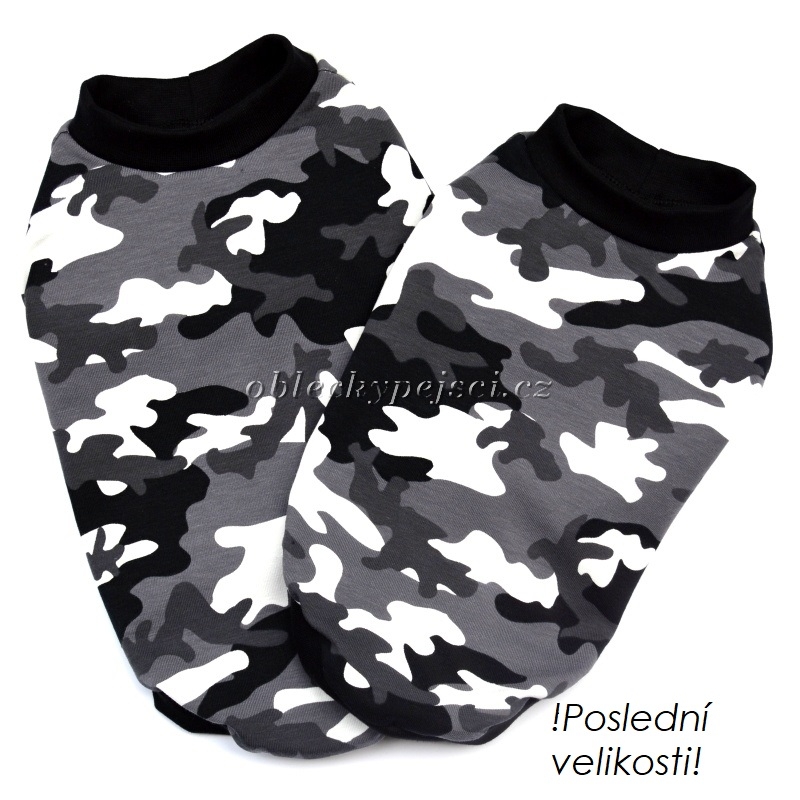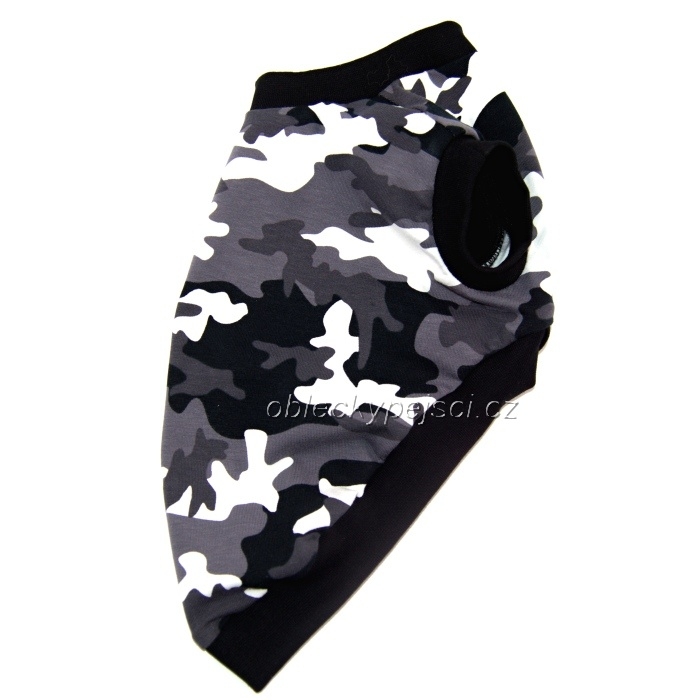 Tričko pro malé psí kluky se šedým maskáčovým motivem do jarních - letních až podzimních dnů.