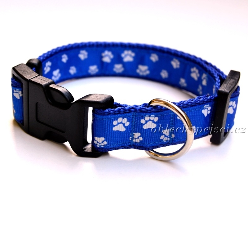 Královsky modrý obojek s tlapkami v šíři 2 cm