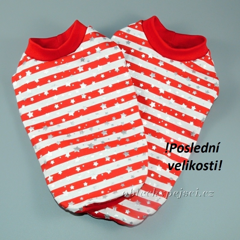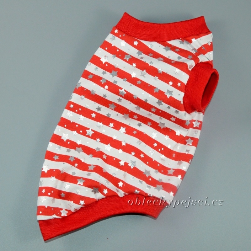 Tričko červeno - bílý proužek se stříbrnými hvězdičkami pro psí holky.