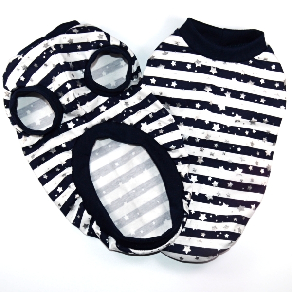 Pruhované modro - bílé tričko se stříbrnými hvězdičkami pro malé psí kluky.