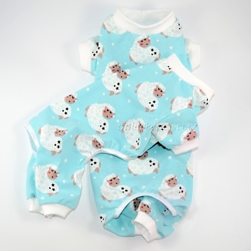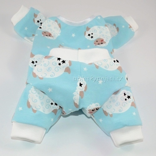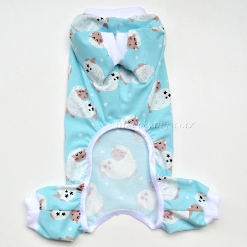 Pyžamo pro psí kluky světle tyrkysově modré s ovečkami pro krásné sny :-)