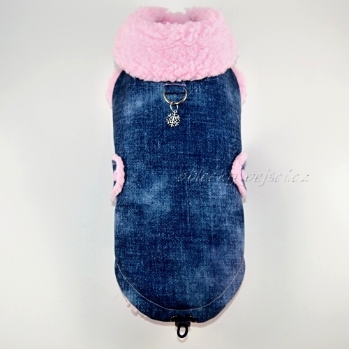 Zimní softshellová bunda s džínovým efektem, zateplená sherpou (beránkem) pro psí holky pro příjemné zachumlání v zimních dnech + přívěsek Zdarma!