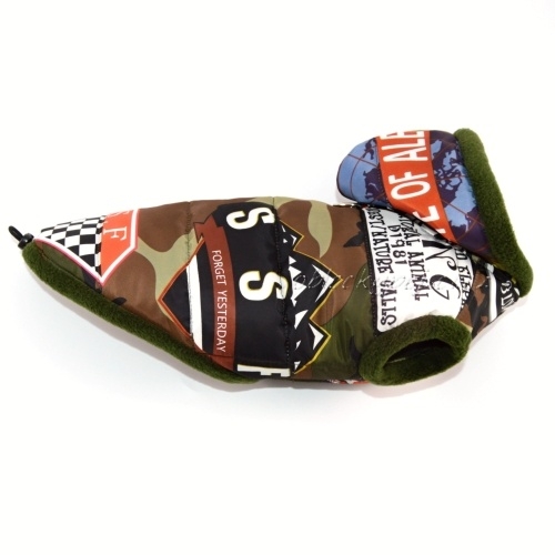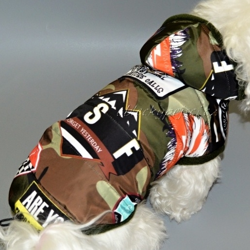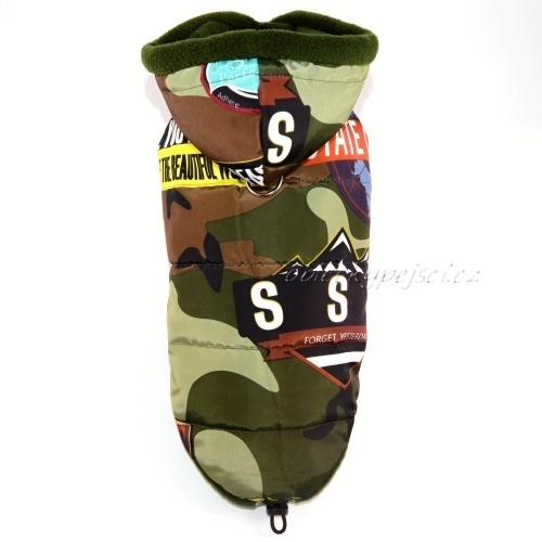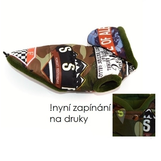 Zimní bunda Army s kapucí pro malé psí kluky s vojenskými znaky - zapínání na druky