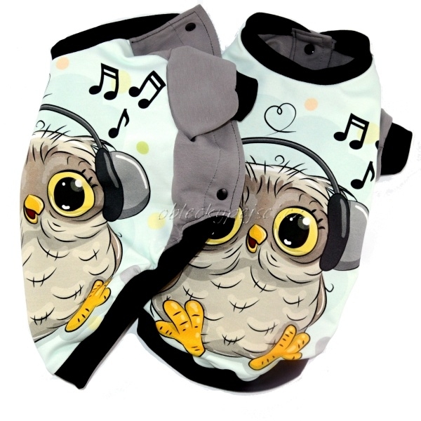 Mikina je ušitá z kvalitní, slabé, nepodčesané, elastické, šedé teplákoviny s krásným, desingnovým, teplákovým panelem s motivem roztomilé sovičky se sluchátky.